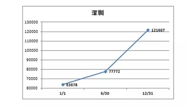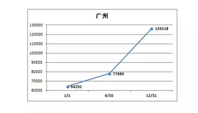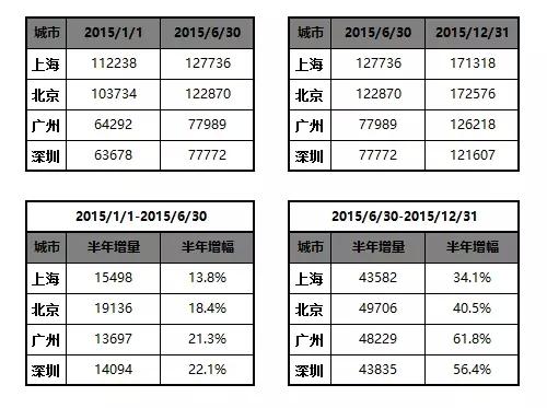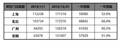 1、首选我们看一下四个一线城市饭店的增加数量,均为5万以上,增幅都在百分之五十以上;