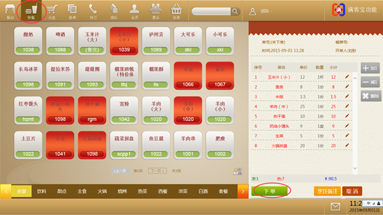 步骤一:点击快餐,进入点菜界面,在点菜界面选择您需要的菜品,点击下单。