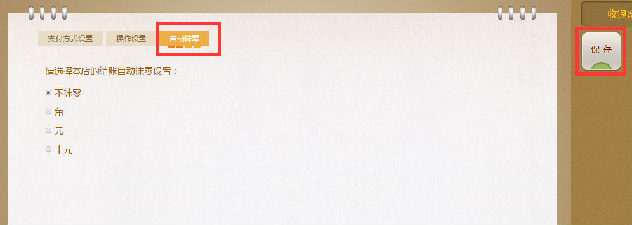 步骤一:支付方式设置完后,点击自动抹零设置后,点击【保存】