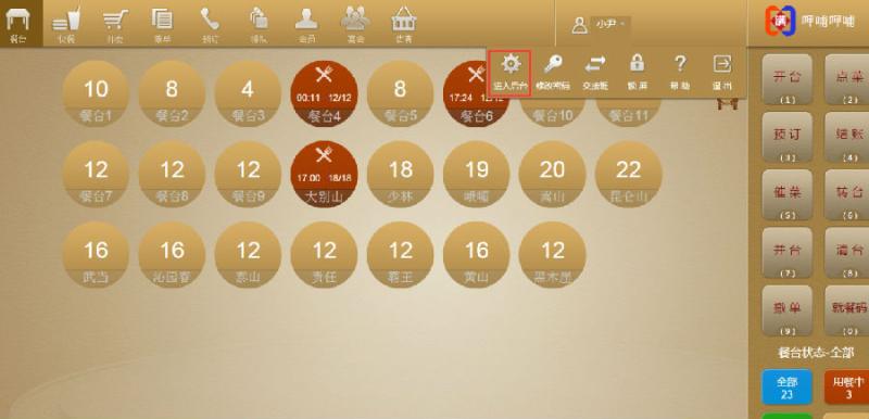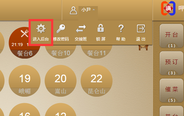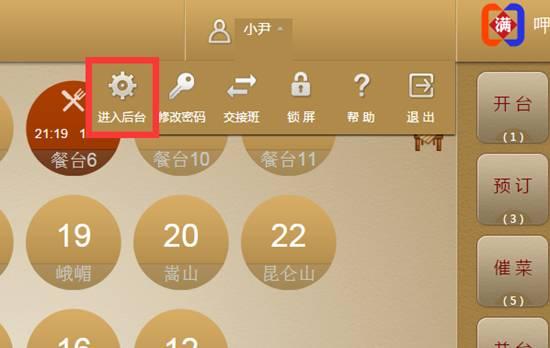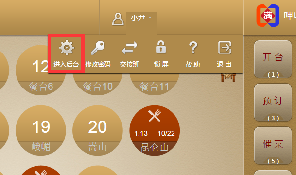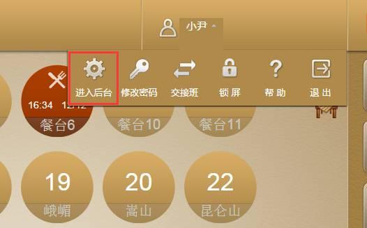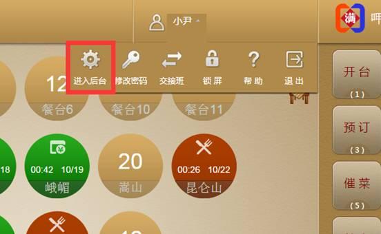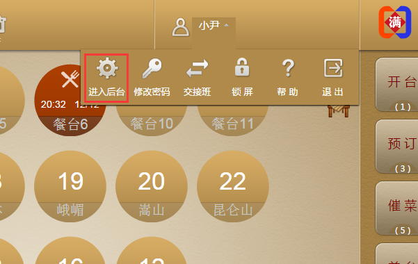 商家登录后点击右上角我的餐厅名字进入后台,进行操作。