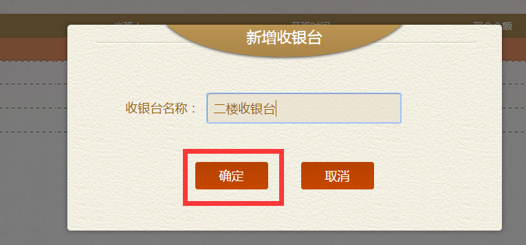 步骤三:点击新增输入收银台的位置,点击【确认】如(二楼收银台)