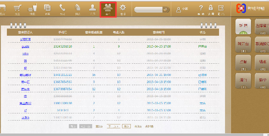 步骤一:点击宴会,进入宴会预订界面。