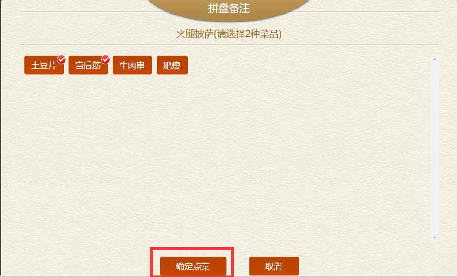 步骤一如点烧烤拼盘,会出现几种烧烤让客人选择2种或多种,点好后点击【确定点菜】即可。