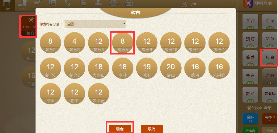 步骤一:是支持转台的,点击刚点错的餐台,再点击【转台】从新选择餐台,选择好后,点击【确定】即可。