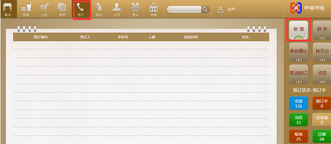 步骤一:点击预订,再点击新增。