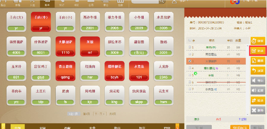 步骤一:点击上完的菜品,再点击右面的【划菜】提示划菜成功,菜品也会变成绿色。