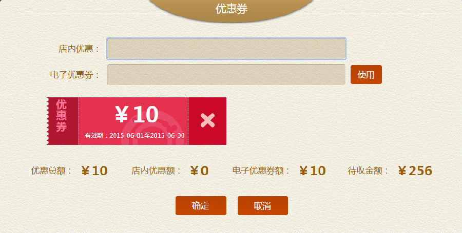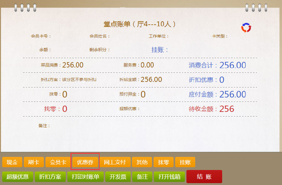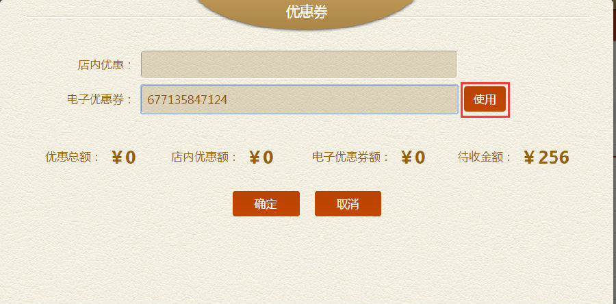 进入账单结账页面,点击“优惠券”按钮,如下图: