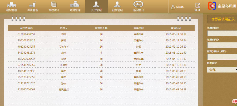 满客宝优惠券采取系统自动核销,商家无需关心优惠券的核销操作。优惠券被使用、超过使用期限系统会自动执行核销操作。