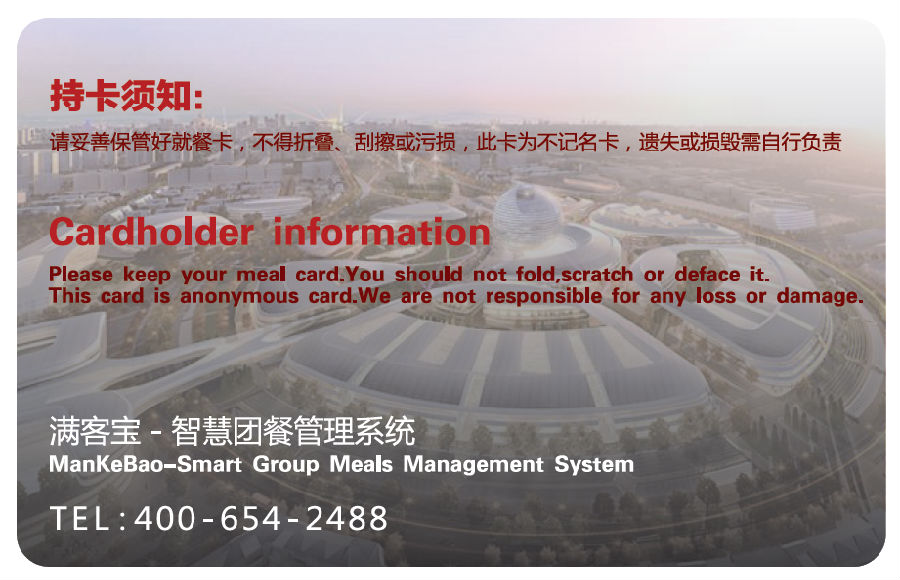 现代感与内涵兼具,大气与时尚并存,中国美食与文化馆共分两层,展出面积1700平米,第一层为中华小吃文化厅,设有七个中国美食档口,一个礼品区;第二层为中国美食及经贸交流活动厅,设有宴会厅、自助餐区、点餐区、vip厅,由于中国美食深受各国人士的喜爱,预计中国美食与文化馆将接待本次世博会绝大部分的参展人员。针对如此大型重要的场合,为不负将中国美食文化发扬光大的重任,满客宝特为本次世博会提供智能售饭终端、非接触式读卡器等专业精良的智能团餐硬件设备,搭载满客宝智慧食堂系统,并为世博会量身定制就餐卡10000张,同时派出资深的技术工程师到现场给予全程的技术支持。