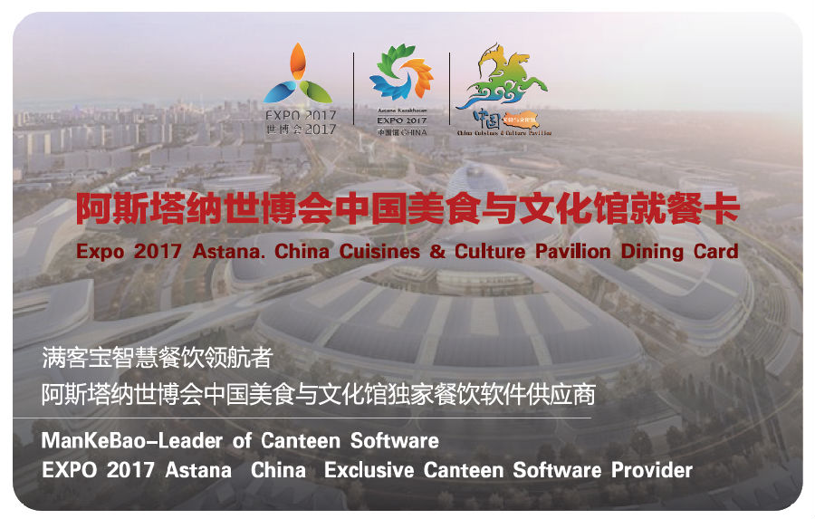 满客宝很荣幸作为本届阿斯塔纳世博会中国美食与文化馆独家餐饮软件供应商出展世博会, 得益于习近平主席提出的“一带一路”战略,恰逢2017年是中哈建交25周年,满客宝抓住本次中哈双方开放发展的良好机遇,将在世博会上充分展示满客宝的技术和实力,为促进中哈两国交流发展、建立满客宝的国际化市场布局而全力以赴。