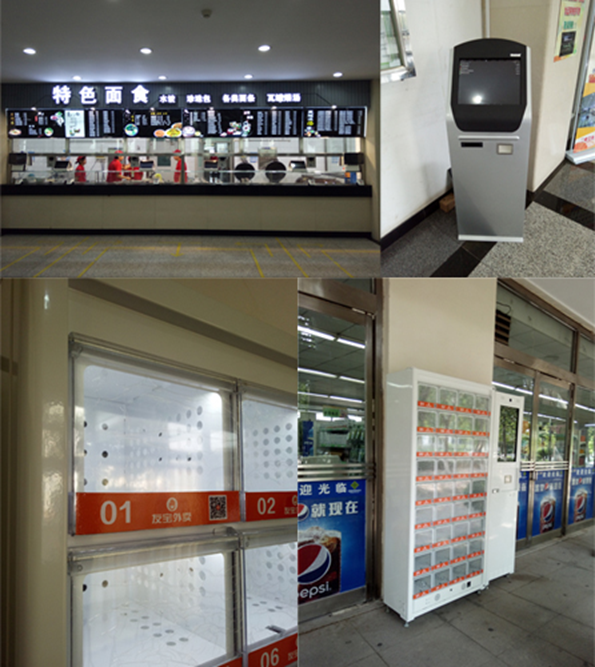2、高校学院:将智能餐柜摆放于宿舍区、教学楼,通过无线WIFI或3G/4G手机卡连接食堂后台系统,便于学生及教职工就地取餐;