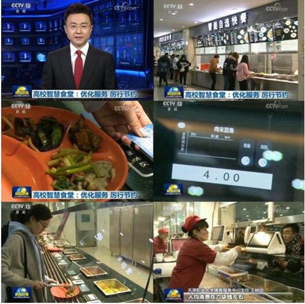 满客宝智慧食堂除为天津职业大学提供软件服务外,还为其提供一整套智能硬件设备,旨为优化食堂服务,提升就餐体验,减少食材浪费。从传统一卡通刷卡取餐到在线支付扫码取餐、从智能餐柜取餐到智能结算台自助取餐、从智能窗口自选取餐再到人脸识别无卡取餐,有了满客宝智能打餐神器,吃多少打多少,再也不用担心食堂阿姨因为手抖饭菜打多或打少了,科学精确的算法统计,很大程度抑制了浪费现象的发生。满客宝智慧食堂一直秉承以“科技提升服务”为理念,以”服务并助力中国团餐产业数字化转型“为己任,在产品细节上认真打磨,它用产品润物细无声地改变着团餐企业的生活,但这次,一直沉稳低调的满客宝,在央视新闻中正式出镜,在传播上给了我们一个大大惊喜。