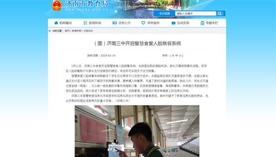 14日,济南市教育局网站发布“济南三中开启智慧食堂人脸就餐系统”,详情如下: