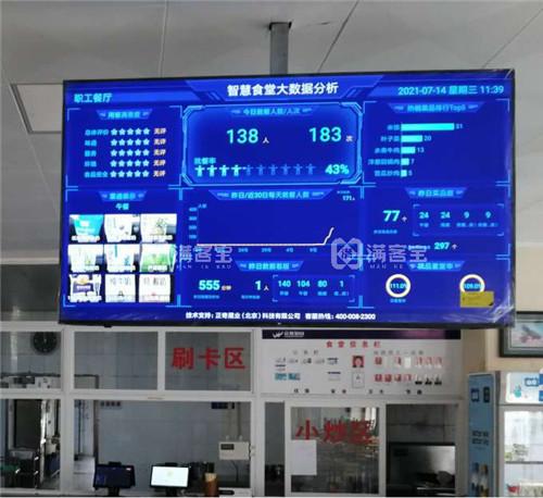 在食堂中的智能显示大屏上,职工能够找到关于食堂的所有动态信息,比如当日餐别菜品信息、后厨备餐视频、爆款菜品、食堂当前人数、拥挤程度,方便职工及时了解食堂现状及就餐需求,使食堂服务更加智能化和人性化。