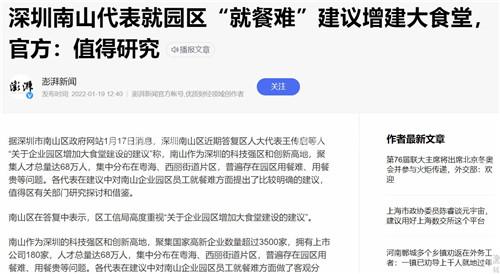 近日,深圳南山代表就园区“就餐难”建议增建大食堂,目前官方回应是“值得研究”,据悉,南山作为深圳的科技强区和创新高地,聚集人才总量达68万人,普遍存在园区用餐难、用餐贵等问题。要满足这么多打工人的就餐,在建设大食堂的基础上,还要建立智慧食堂管理,以保证就餐效率。