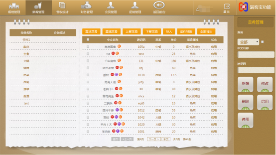 服务员点餐是,省去翻菜单时间,顾客需要的菜品直接输入拼音、速记吗、名称的个即可定位菜品。