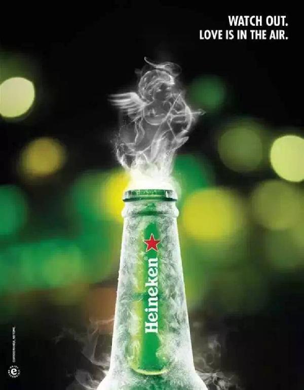 ▲ 喜力。虽然不确定是2017年情人节海报,但创意很讨巧,酒气化作丘比特,催化爱情好助手。