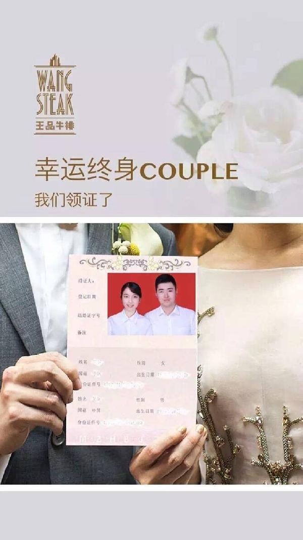 在情人节当天把“终身免费吃王品”名额给了一对新人,很应景,很温情。