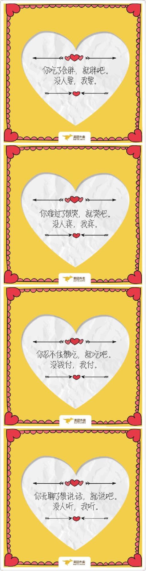 ▲ 美团外卖。用情书体向用户表白,像刚做好的可口饭菜一样暖心。