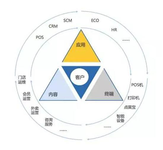 郝总强调,2017年作为运维及系统集成中心的重中之重,就是联合奥琦玮和合作伙伴的核心产品和解决方案,为门店提供最优的解决方案——实施优、培训优、升级优、维护优、成本优,所以现在在选择硬件合作伙伴的时候已经不是以往单纯的设备服务了,而会侧重选择一些价格更优、关系更好、方方面面都能兼顾并能直接推向客户现场的友商。谈及硬件服务的核心指导思想,郝雪认为应该是一个开放式闭环的结构(如下图)。奥琦玮提供POS、CRM、供应链,新起的人力管家等应用,但客户需要的不仅是应用,他们同样需要稳定性优、更适合的终端,还有就是内容的提供,包括门店运维、会员运营、外卖运营、咨询服务等方面。