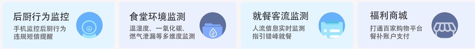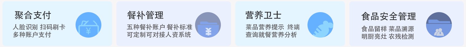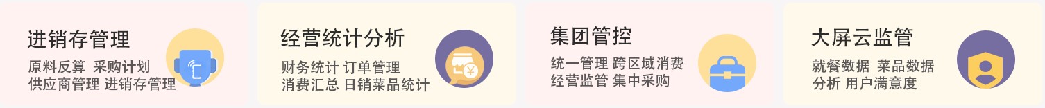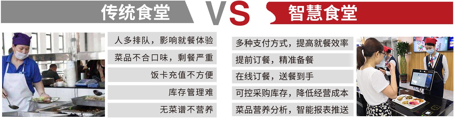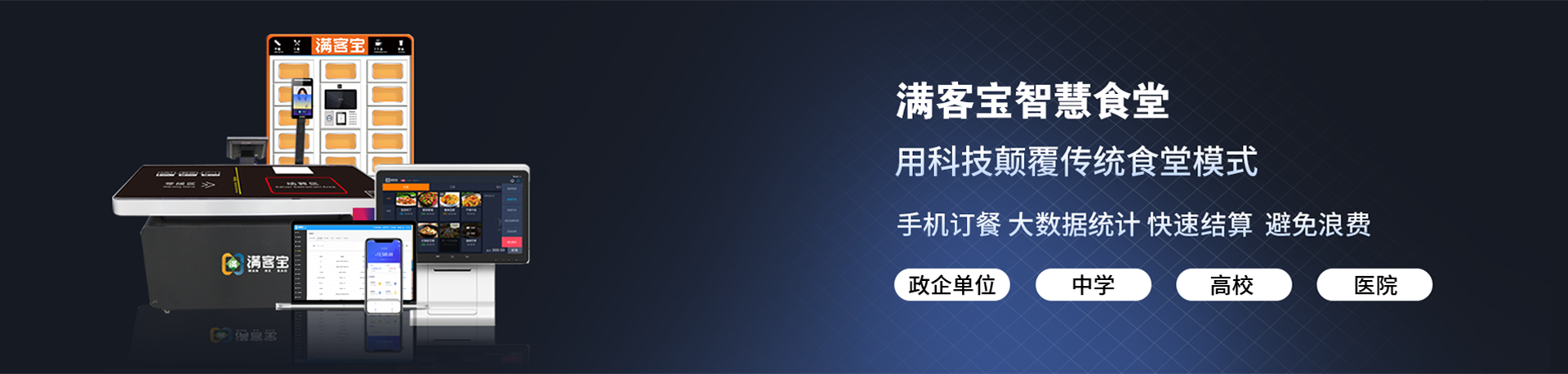 满客宝智慧食堂是基于政府机关、企事业单位、医院、学校等食堂管理模式,创新打造的食堂订餐及就餐模式。系统支持多种食堂就餐形式,包括自选餐、自助餐、档口就餐、预订取餐等,满足食堂多样化餐饮模式的需求。同时系统具备强大的后台管理功能,不仅包括用户管理、消费限制、菜谱管理、卡务管理、进销存管理、数据统计、互动中心、食品安全、食堂环境监测、后厨行为检测、就餐客流量统计等,还有高端的食堂总部管控能力,满足所有规模的食堂管理需求,为食堂管理者提供食堂优化运营的数据支撑。