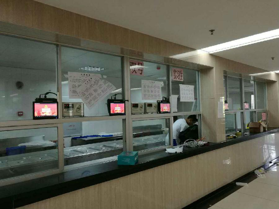 广州市天河区人民法院食堂使用满客宝管控版,硬件设备为智能单屏卧式售饭终端5台,智能触摸屏自助订餐终端3台,饭卡读卡器7台,采用纯内网部署。