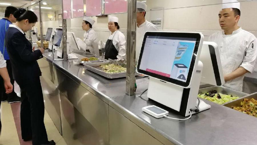 满客宝智慧食堂管理系统为山东农行食堂量身打造智慧食堂解决方案,分别在现场点餐、领餐、支付等前端服务和后端管理环节进行了产品功能上的升级,为其提供一整套智能硬件设备,包括15寸智能单屏售饭终端、智能读卡器及其他智能硬件共计33台。员工可通过满客宝智能硬件进行一键操作点餐,农行掌上银行在线充值饭卡,随到随吃,通过满客宝智慧食堂的一体化解决方案可以全面的提升山东农行食堂服务水平与就餐效率。