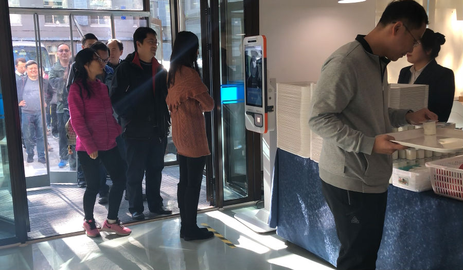 在食堂门口放置一台KI智能就餐终端,食堂就餐人员提前进行人脸录入,通过KI智能就餐终端时刷脸完成身份确认并扣费,然后进入自助餐厅就餐。