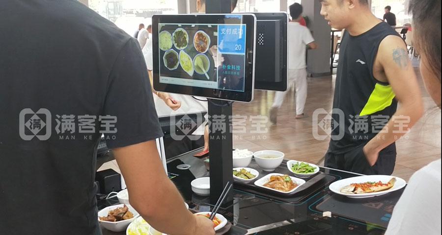 针对瑞宝饭堂的具体情况和供餐对象,满客宝智慧食堂管理系统为通过考察调研,为其订制“自选餐+智能结算台”的食堂供餐解决方案。就餐者进入食堂进行自主选餐,将放好菜品的餐盘放置智能结算台上,系统自动识别菜品定价,就餐者通过刷卡、扫码等方式进行支付。