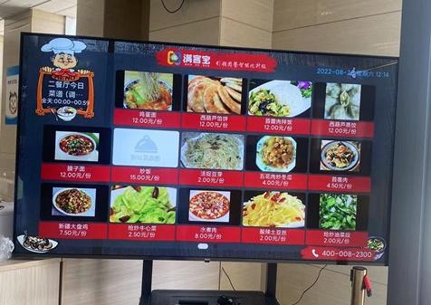 3、食堂中的菜谱大屏也是员工最为满意的改革之一,一进入食堂,就可以看到今日菜谱,大屏轮播屏幕也会显示食堂最新通知及消息,让员工就餐更加顺畅。