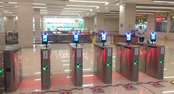 在食堂门口放置13个智能闸机通道,食堂就餐人员提前进行人脸录入,通过智能闸机时刷脸完成身份确认,完成取餐就餐。