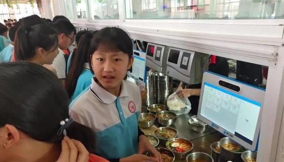 学生在食堂用餐,在选择完菜品后,只要对准打饭窗口一台带有人脸识别功能的“人工智能设备”,就餐人姓名、套餐类型、就餐金额等信息自动出现在客显屏幕上,就餐人员只需轻轻点击确认即可实时完成付款。同时,用餐学生家长手机上会收到一条就餐消费的提醒,可是看到学生实时的消费信息。