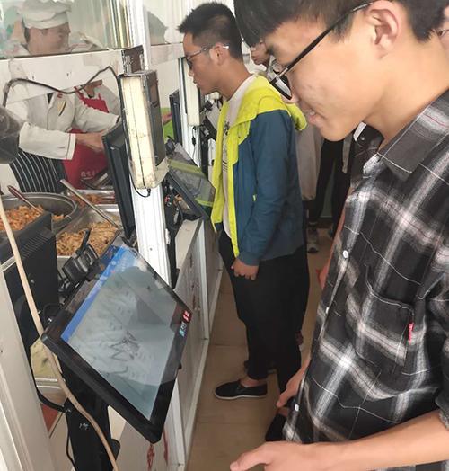 学生在学校食堂选择完菜品后,只要对准打饭窗口一台带有人脸识别功能的“刷脸器”,用餐人姓名、套餐类型、用餐金额自动出现在屏幕上,点确认即完成付款。