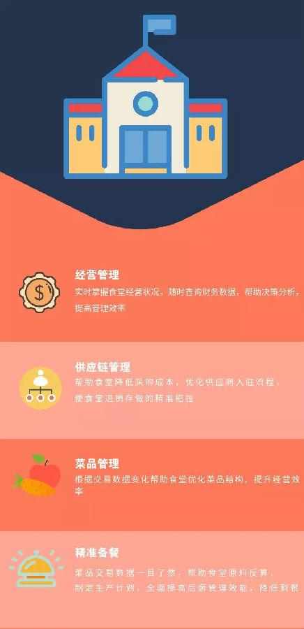 前期,林州二中食堂存在菜品价格混乱导致成本无法控制、菜品未经检测导致食物菜品不安全质量低、人员流失大导致管控风险大等问题。通过智慧食堂管理系统,学校食堂可根据订餐数量进行食材采购,确保有量有节,节省食堂经营成本;同时还可依据订餐信息可追溯出每项备餐依据,减少人力统计时间,提高运营效率,让食堂运营模式也更加精准化、现代化。