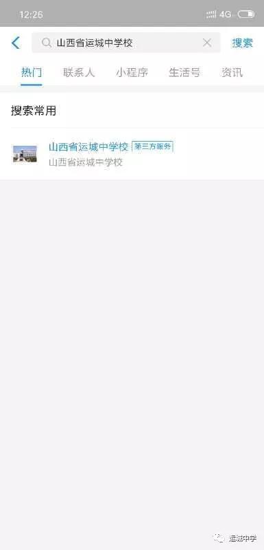 第一步:打开支付宝首页,输入“山西省运城中学校”,点击搜索。