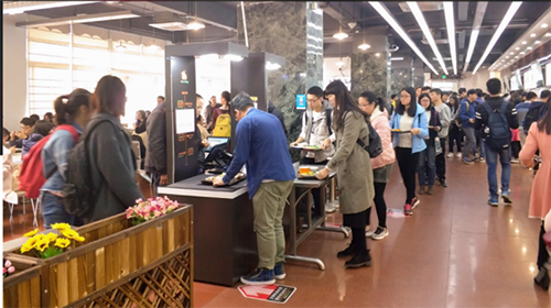 大数据显示,目前市场主流消费者为 80 后、90 后、00 后这些年轻人群,他们对档口的整体形象、菜品的口味要求较高。因此,团餐和社餐的边界也在模糊化,团餐业也开始走特色化、品牌化发展路线。医院食堂给大众的感觉一般都会有“选择少”、“难以下咽”、“环境压抑”的刻板印象。为了改变医院食堂的形象,南京明基医院率先引入『合富润生-医家之煮』美食广场,也是国内首家开在医院的美食广场。温暖明亮的就餐环境,使就餐者放松心情明,同时基医院美食广场引入满客宝智慧食堂管理系统,可以通过在线订餐,刷脸、刷卡、扫码等形式结算取餐,提高就餐效率,让就餐者体现高科技带来的便捷和舒适。美食广场管理者可以对就餐数据统计分析,食品安全的监管,使管理变得更简单,方便快捷,创造多方共赢。