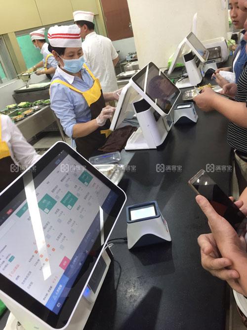 从内部软件设计上来说,满客宝智慧食堂围绕区别餐补账户设置、菜品差异定价设置、支付账户消费比例设置等多方面展开,重点解决不同就餐群体的差异付费、餐补利用等焦点问题,替代人工记账,方便食堂管理后台调取员工不同的餐补账户消费记录,进行精准对账。加强企业食堂消费系统后台软件的适配性,在降低档口人工工作量的同时,大大节省支付环节的核算时间,提升员工就餐效率。而硬件上,芯片结算台、自助称重打餐台等设备,不仅可为就餐员工打造便捷的自助就餐体验,还可替代食堂人工打餐方式,解放人力降低成本,为企业食堂带来了全新的管理模式。