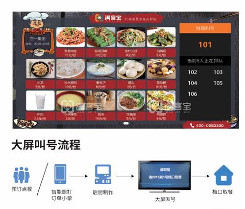 针对现点现做档口,或预订餐档口取餐,满客宝智慧食堂结合档口收银设备,用户点餐后自动排号,并向用户出具取餐小票,点餐用户可通过移动端或显示大屏查看排号状态,档口出品时,通过显示大屏叫号取餐;同时在用户移动端可实时查看当前排号位置,让用户无需排队等待即可及时取餐,就餐幸福感更高。