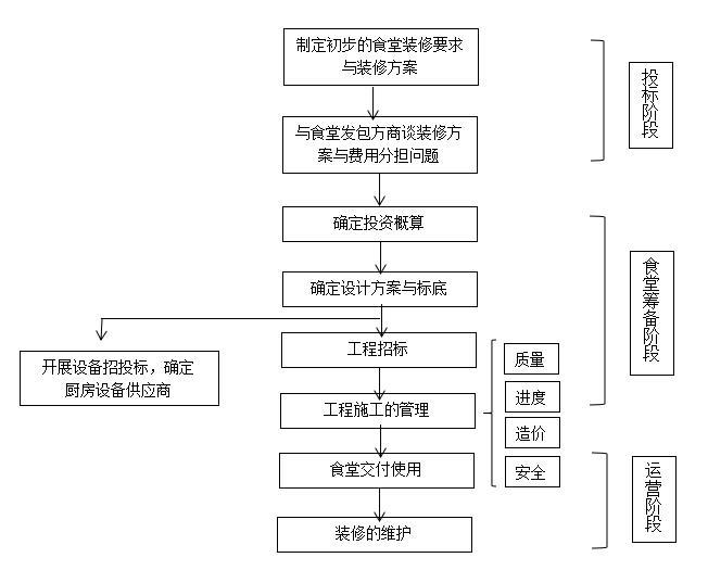 (4)采用项目融资的形式,引入第三方进行装修投资。发包方承诺若干年内以食堂的承包费溢价偿还装修款。这种方式有利于发包方强化对食堂承包商的管 同时也可减轻承包商的资金压力、