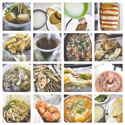 金黄色的鸡蛋仔蓬松地装在袋子里;海味的清汤抄手上撒着青翠的葱花;半个切开的卤蛋像一艘小船静静地停泊在一碗卤肉面上;小火锅的红油中丰富的食材微微翘首……