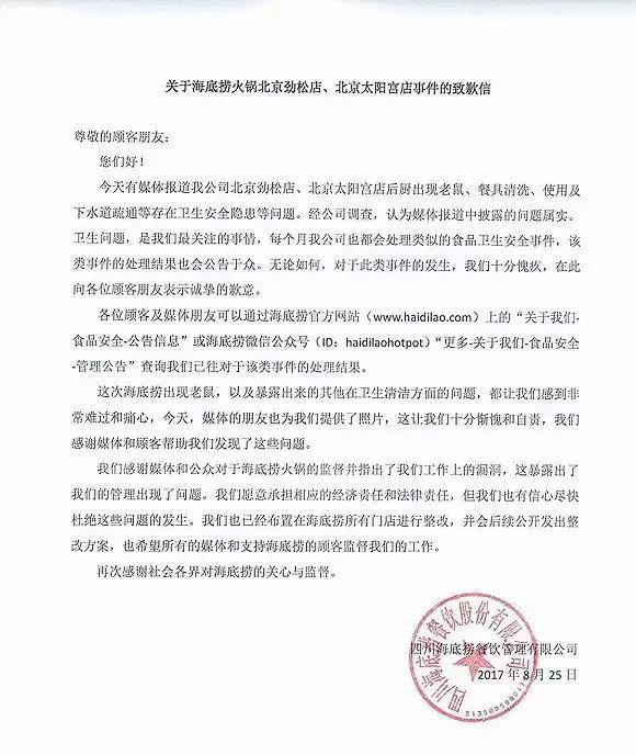 面对此事件,满满只想说食品安全无小事,岂是你一个危机公关和一张纸就可以解决的,而舆论场上,关于“危机”的讨论,完全被公关所置换。我们应该认清一个事实,海底捞这次触碰的是中国食品安全的底线,公关不是万能的,也更不应该蒙蔽公众的眼睛。