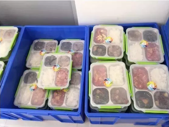 考虑到及时配送到位,配餐企业要在10半左右完成学生餐的制作。菜品送达之后,凉了怎么办?为避免这种情况,需用特殊材料制作餐盒。