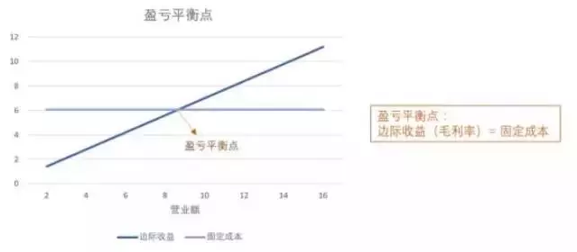 盈亏平衡点是餐厅开始盈利的临界点,利用现金流算出的临界点能保证餐厅生存,却不能让餐厅真正盈利,所以当餐厅成功越过了生命线,我们就要向二级目标进发,这就是盈亏平衡点。