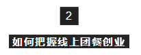 其实,以线上团餐为中心的创业创新方案还有很多,这需要创业者基于自己的资金和人脉实力仔细规划。