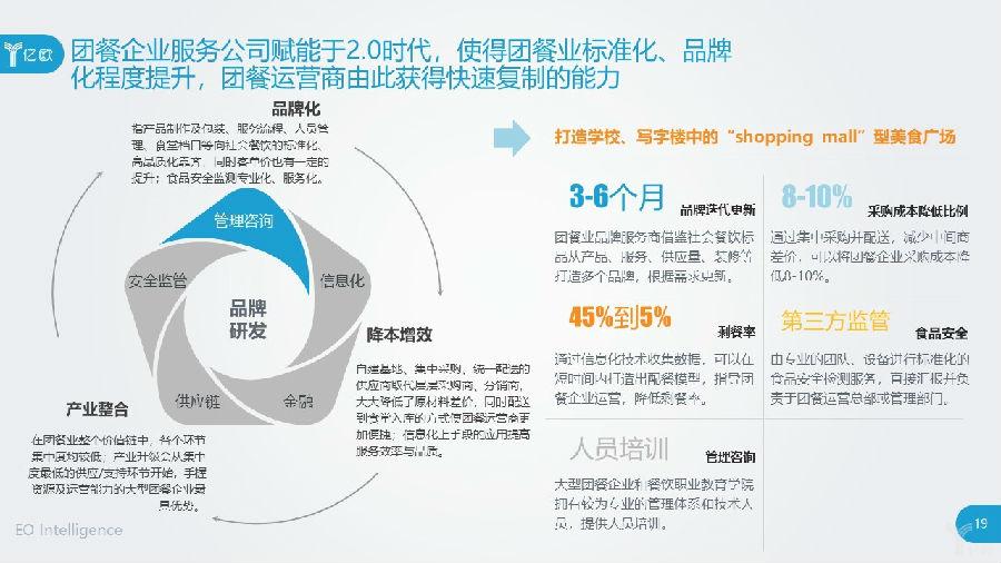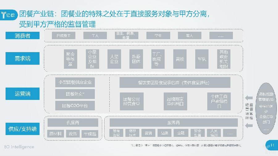 而且,餐饮业整体的转型升级中,团餐产品逐渐向标准化迈进,半成品加工、配料等业态的重要性凸显。这都为团餐业供应端服务的整合提供了条件,即集中采购商代替多级供应商、经销商、仓储,并统一配送。
