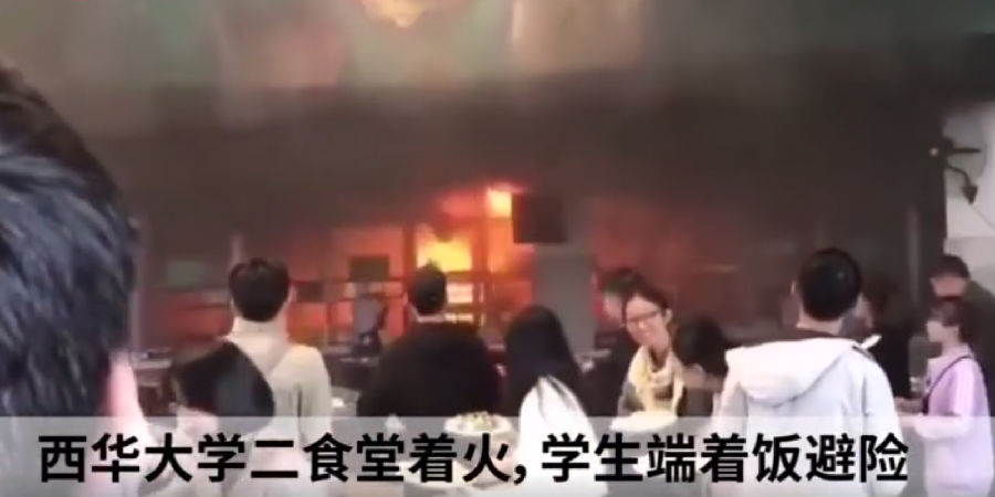 10月29日,四川成都西华大学二食堂火了,因为现场浓烟滚滚,可以学生们却异常镇定并未惊慌,还舍不得手里的饭呐,难道是消防演习?NO,是真的着火了。
