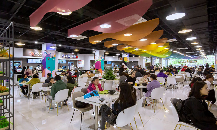 主题场景理念让食堂存在层次分明的光影,热切而浓烈的就餐氛围,使智慧食堂服务品质得到良好呈现。
