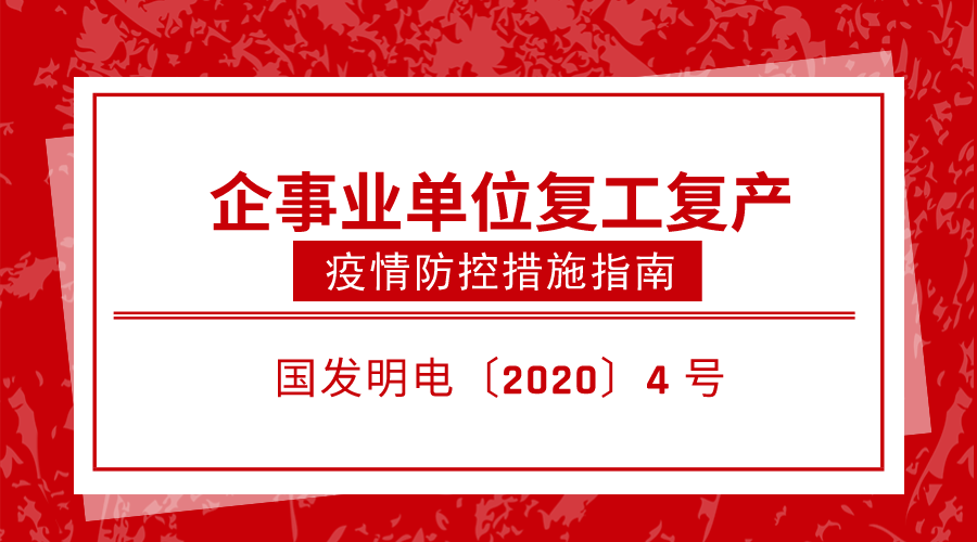 国务院应对新型冠状病毒感染肺炎疫情联防联控机制关于印发企事业单位复工复产疫情防控措施指南的通知