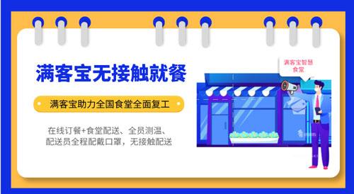满客宝无接触就餐解决方案,采用的是满客宝APP等线上订餐方式,完全避免了去食堂吃饭,人员之间的摩肩擦背,减少人与人接触的机会,让就餐者更安心!