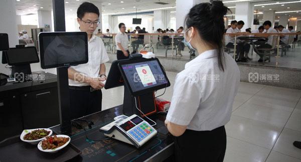 此外,满客宝智慧食堂消费系统还设有智能自主称重打餐台等设备,整体构建自助就餐场景,单位就餐人员可根据自己的食量和需要进行打餐,实现全流程自助订取餐,有效提升“光盘”效率。
